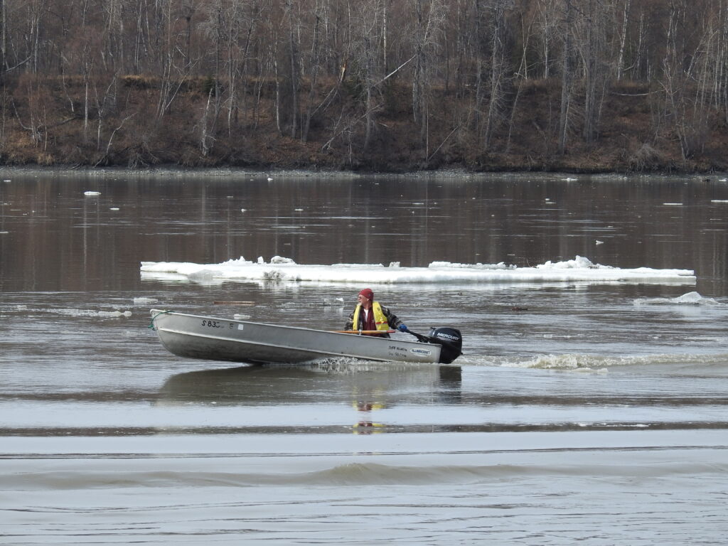 Jeff got his boat in the water a few days ago. As you can see there are still icebergs on the bank as well as in the water.